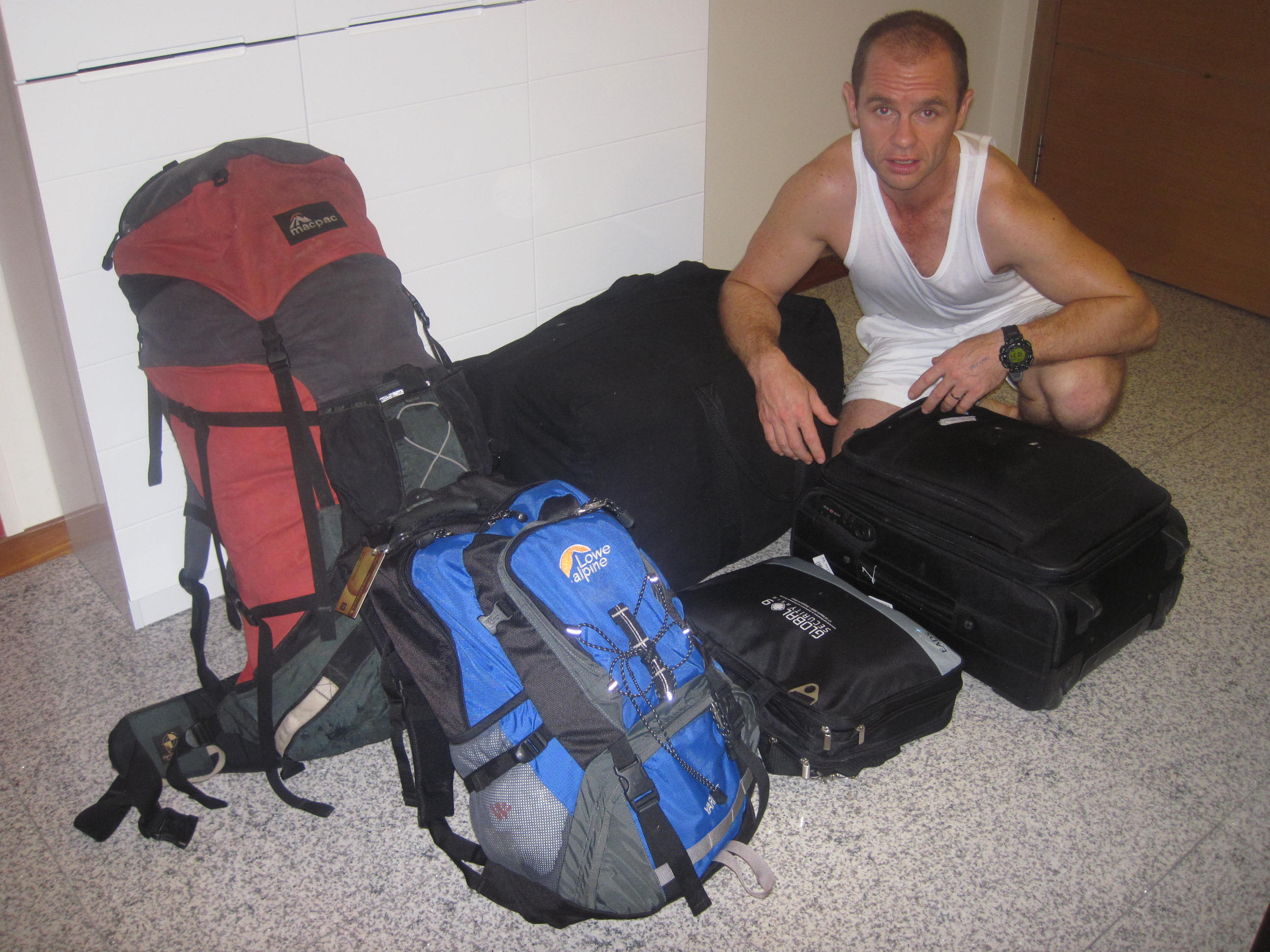 All the gear is packed and as you can see from the photo, one duffel bag, one pack, one mini suitcase, one small back and a computer bag. I am not sure of the weight yet, but am guessing around 50kg+. I have 40kg baggage allowance on Silkair and with Stephanie’s 20Kg allowance I am hoping they will let me through without being charged any excess!