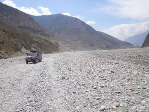 The Annapurna circuit officially goes for 220km. The starting point is in a village called Besi Sahar. Almost all people walk it counter clockwise. It reaches a highpoint of 5410m as you cross the Thorong La pass. However road building is rapidly eroding the start and finish of the track. The bus I took actually can drive a further 9km from the official start point at Besi Sahar to a village called Bhulbhule. From Bhulbhule you can take a 4wd or jeep a further 20 km to the village of Chamje. From Chamje they are blasting the road into the side of the steep gorges, all the way to Chame – a further 27km. In a few years you may be able to drive all they way to Chame.