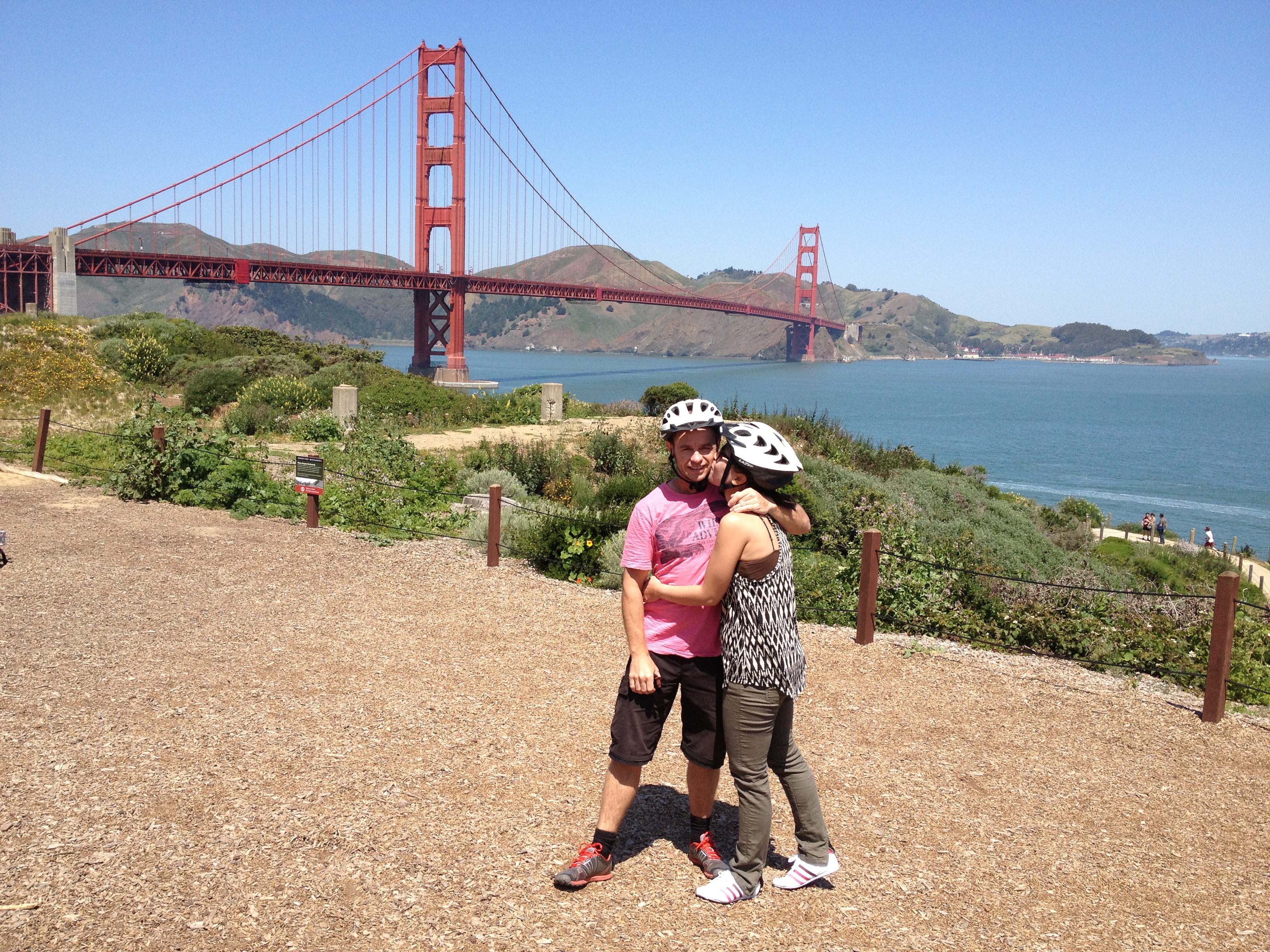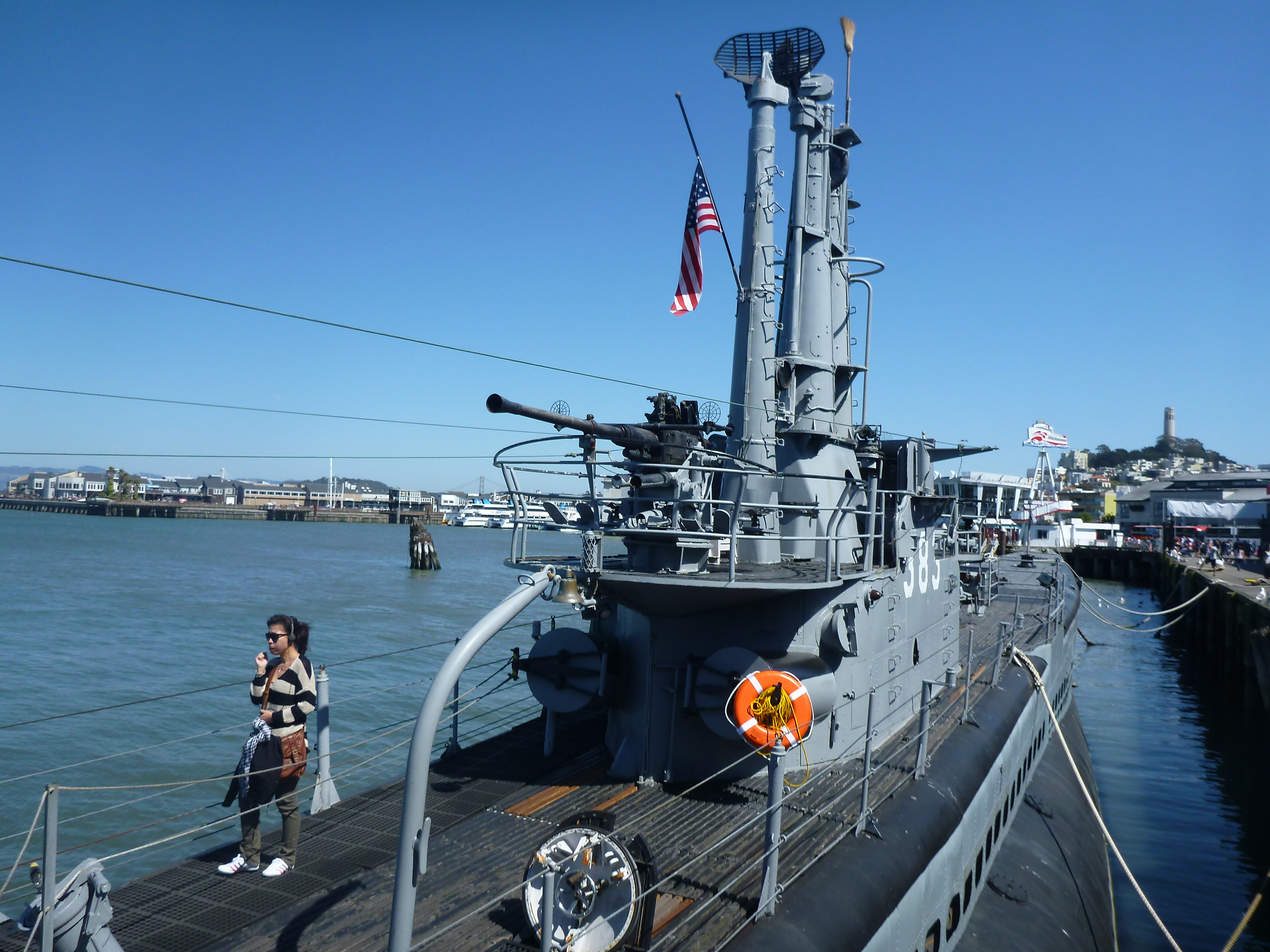 Stephanie loving being in a solitary confinement cell on Alcatraz.The view from Alcatraz overlooking the Golden Gate.Stephanie on-board the USS Pampanito – a WWII submarine which saw active duty and sunk 6 Japanese vessels and damaged 4 others. Really interesting to walk through the submarine and see how cramped the living and working quarters were. She is now preserved as a floating museum.Stephanie being chatted up by Mark – a sailor who served on the USS Pampanito during WWII, now he is over 90 years old.About to cycle over the beautiful Golden Gate bridge.