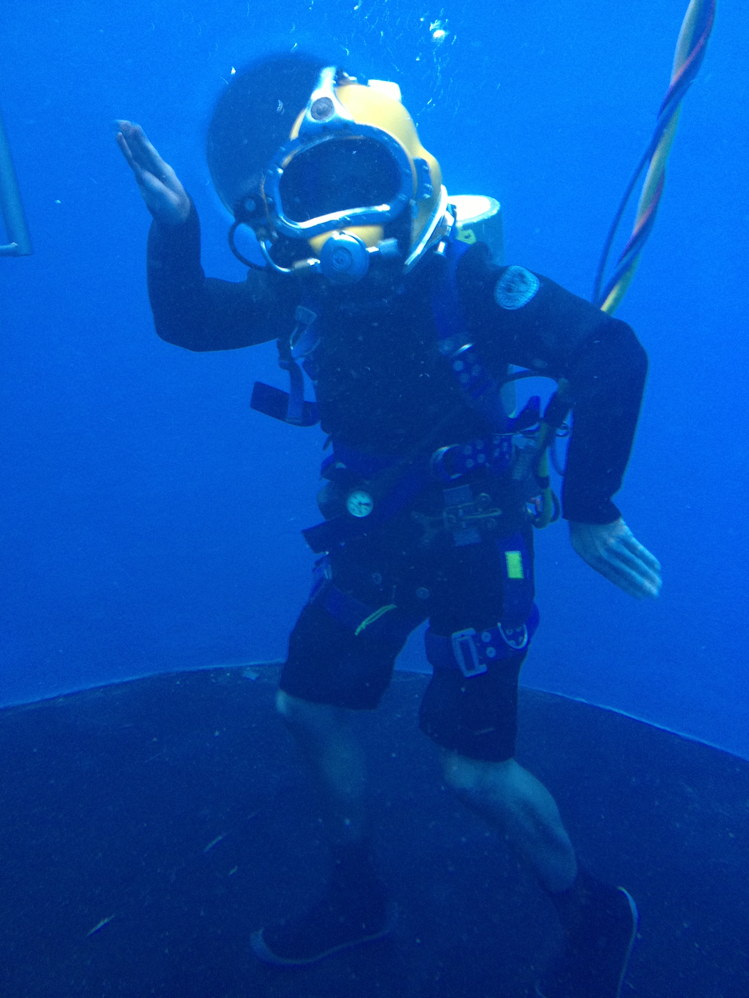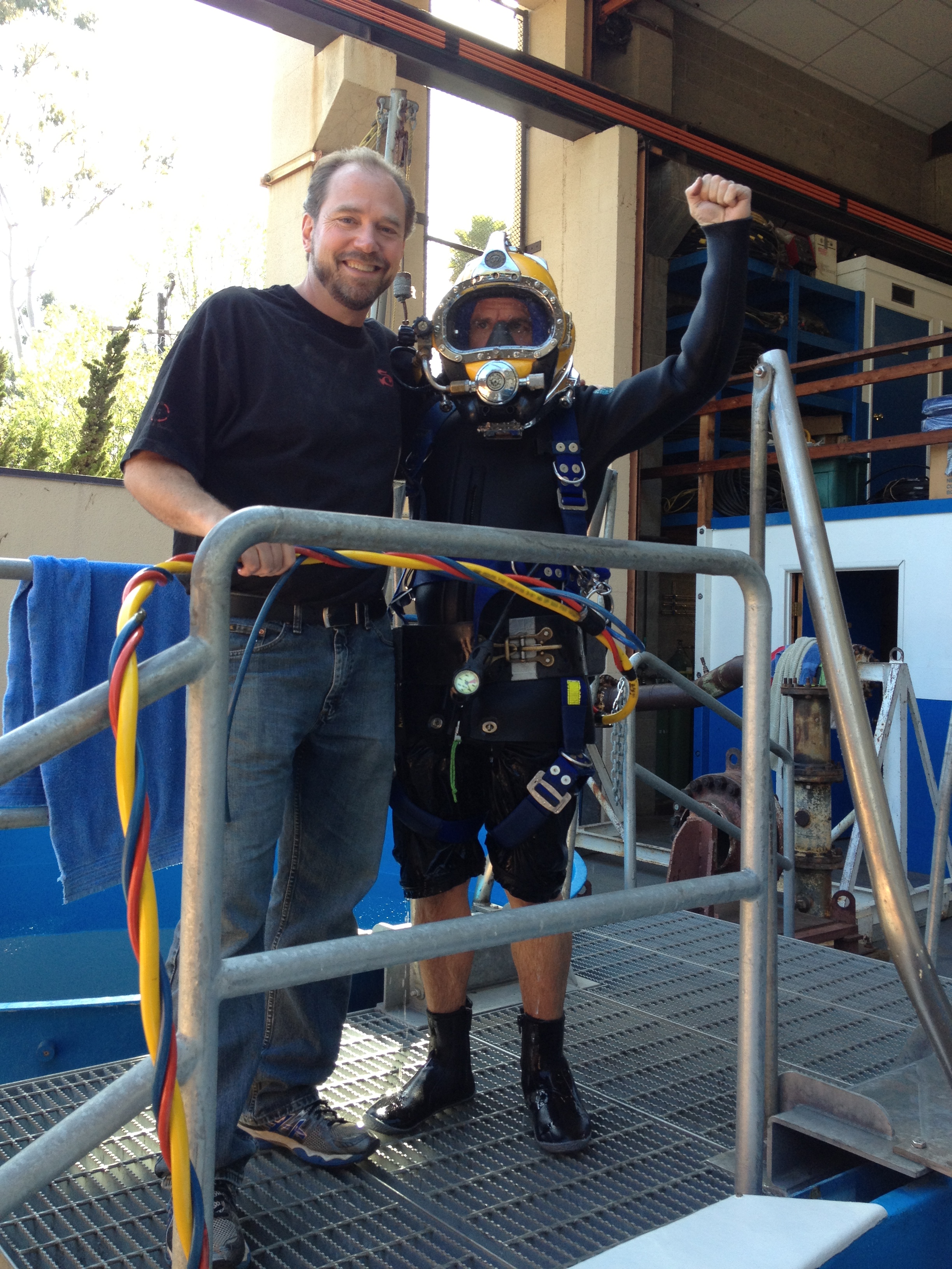 The road follows the coastline along a windy road known as State Route 1 (SR 1). The views of rocky coastline and the Pacific Ocean are stunning.The view from Sharp Park Pier – the Pacific Ocean meets land and the sea gets very rough.Sharp Park Pier – very windy walk but nice views.Stephanie enjoying the view.Seals relaxing on the end of Sharp Park Pier.Stephanie enjoying a sunset in Cambria.Hanging out in the Big Sur. It’s actually a tiny place.Lunch in the Big Sur – ribs and grilled prawns – fantastic!A possum meets a ground squirrel in Cambria.This little fella was very friendly – not shy at all and came right up to me looking for food.In Santa Cruz – it seemed like a good idea to ride the Giant Dipper roller coaster just after a bowl of clam chowder.In the Giant Dipper – with a cheeky monkey behind us. It may be the 4th oldest roller coaster in the USA and made of wood but it still scared the shit out of me and I almost lost the clam chowder.Stephanie in the town of Monterey – ex Sardine cannery capital of the world, now home to a cool aquarium.Stephanie trying out an old diving helmet in the Marine Diving Technology facility in Santa Barbara.All suited up in commercial diver gear with the super cool Dan Vasey at the Marine Diving Technology facility. Dan is the lecturer here and together with his lovely partner Erin showed us some great Santa Barbaran hospitality – beer, seafood, diving and all. Thanks Dan and Erin!Me blowing bubbles in the tank at the Marine Diving Technology facility.Never miss an opportunity to pull a head stand.A panorama of the views on the drive – click the image to enlarge.Sadly all trips come to an end…. Thank you California for the wonderful time and beautiful memories.