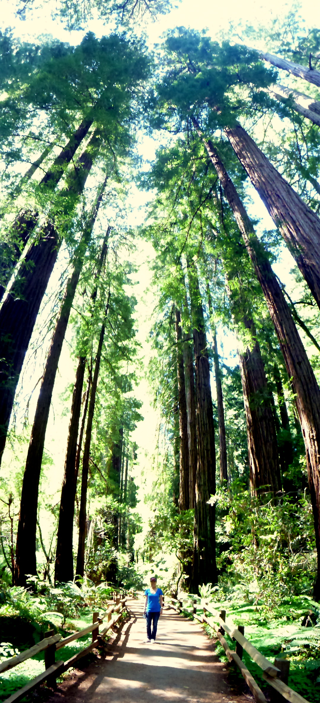 Stephanie walking through the coastal redwood trees which are the main attraction in Muir Woods, they can grow over 100m in heights and are many hundreds of years old.In the early 1900’s most of these beautiful tree’s were cut down. Thankfully people like John Muir and U.S. Congressman William Kent and his wife, Elizabeth Thacher Kent managed to save some of them.