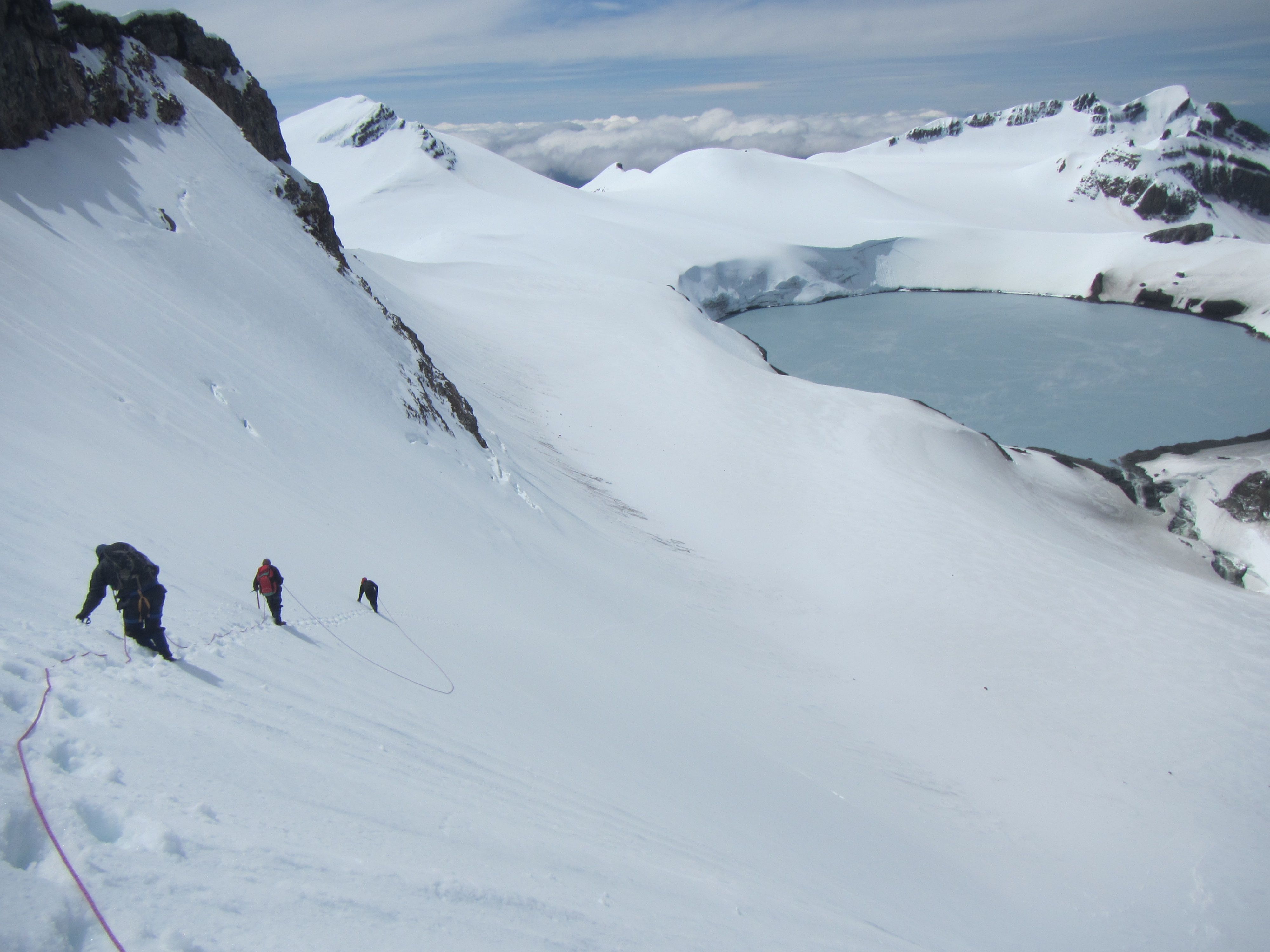 After our windy and icy climb of Tahurangi Peak, the highest peak on Mt Ruapehu, the highest point in the North Island, we were relieved to wake the next morning at 6am to a clear and windless day.