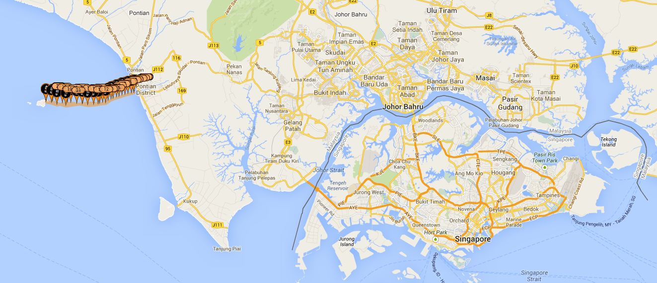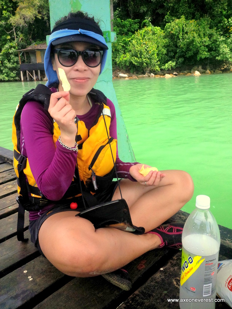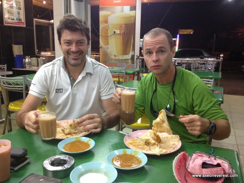 I had managed to convince Stephanie my wife and long-time rugby mate Andrew Glass (a.k.a ‘Glassy’) to join me. We set-off at 5:15AM from Singapore with two kayaks loaded up ( a double for Stephanie and myself and a single for Glassy). After an obligatory ‘athletes breakfast’ of roti prata (aka rote canai) in Gelang Patah in Malayia, we were in the water by just before 8am at the small town of Pontian and paddling.