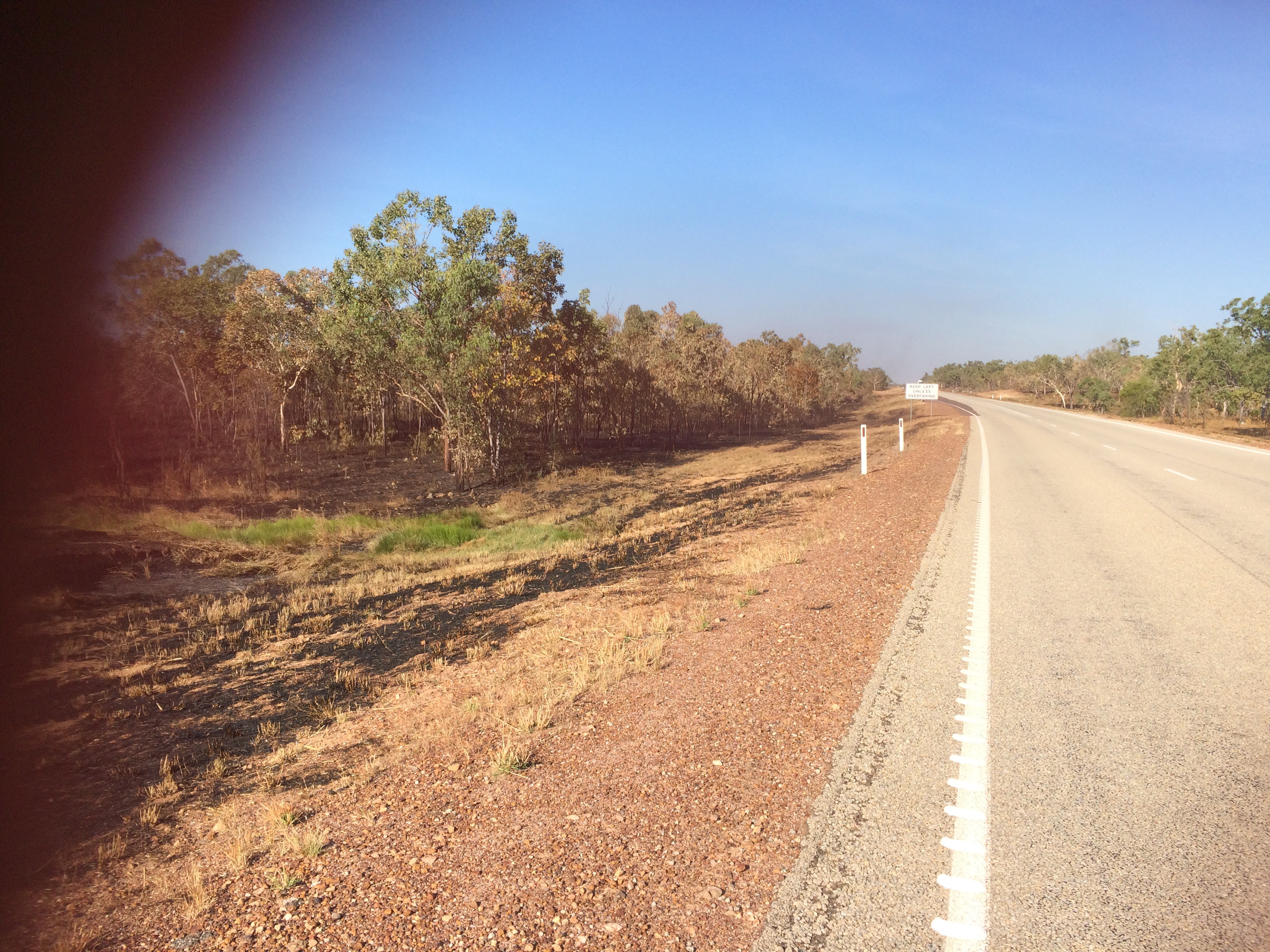 I was lucky to be accompanied by fellow Kiwi ‘Rob’ a soldier with the Australian Army for the first 50km out of Darwin. I was pretty happy when he turned off as I could have a break as we rode non stop and him being on a light road bike and me on the loaded up Donkey was a mid match even though he rode nice and slowly for me. Day one went generally well although I was I introduced to the afternoon heat of 35 degrees and road trains which are huge! They have upto three massive trailers and roar along at 100 over KM per hour but generally give me lots of room which is nice.