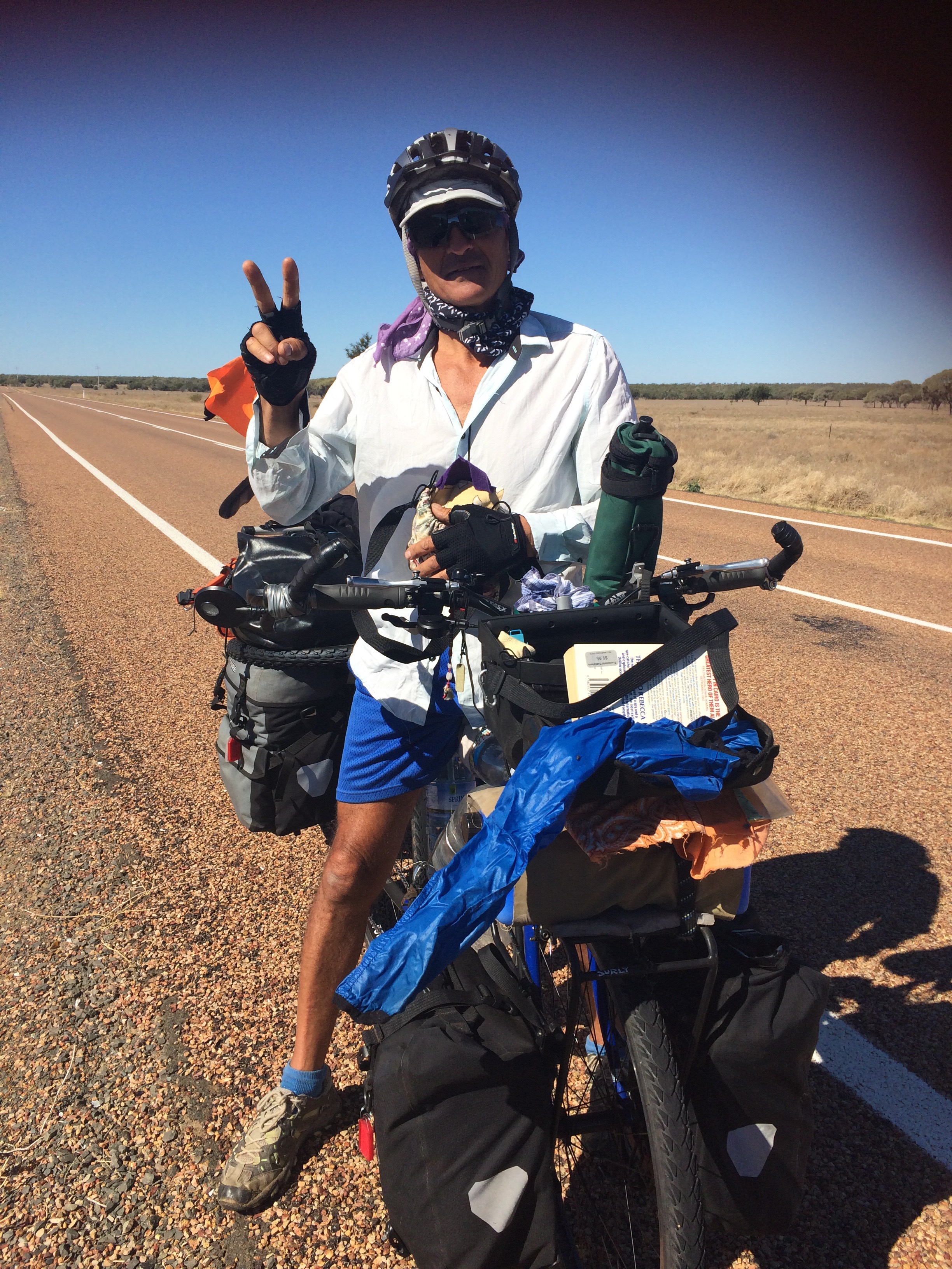 I then set off for an 80km push into the wind to Barcaldine. There are so many dead and rotting kangaroo on the roads now it stinks to high heavens. Every 100m there is another carcass. The country side is still very flat and open here and today I met my first proper cycle tourist on the whole journey – this dude who is 60 and is Cycling around Australia for a year!