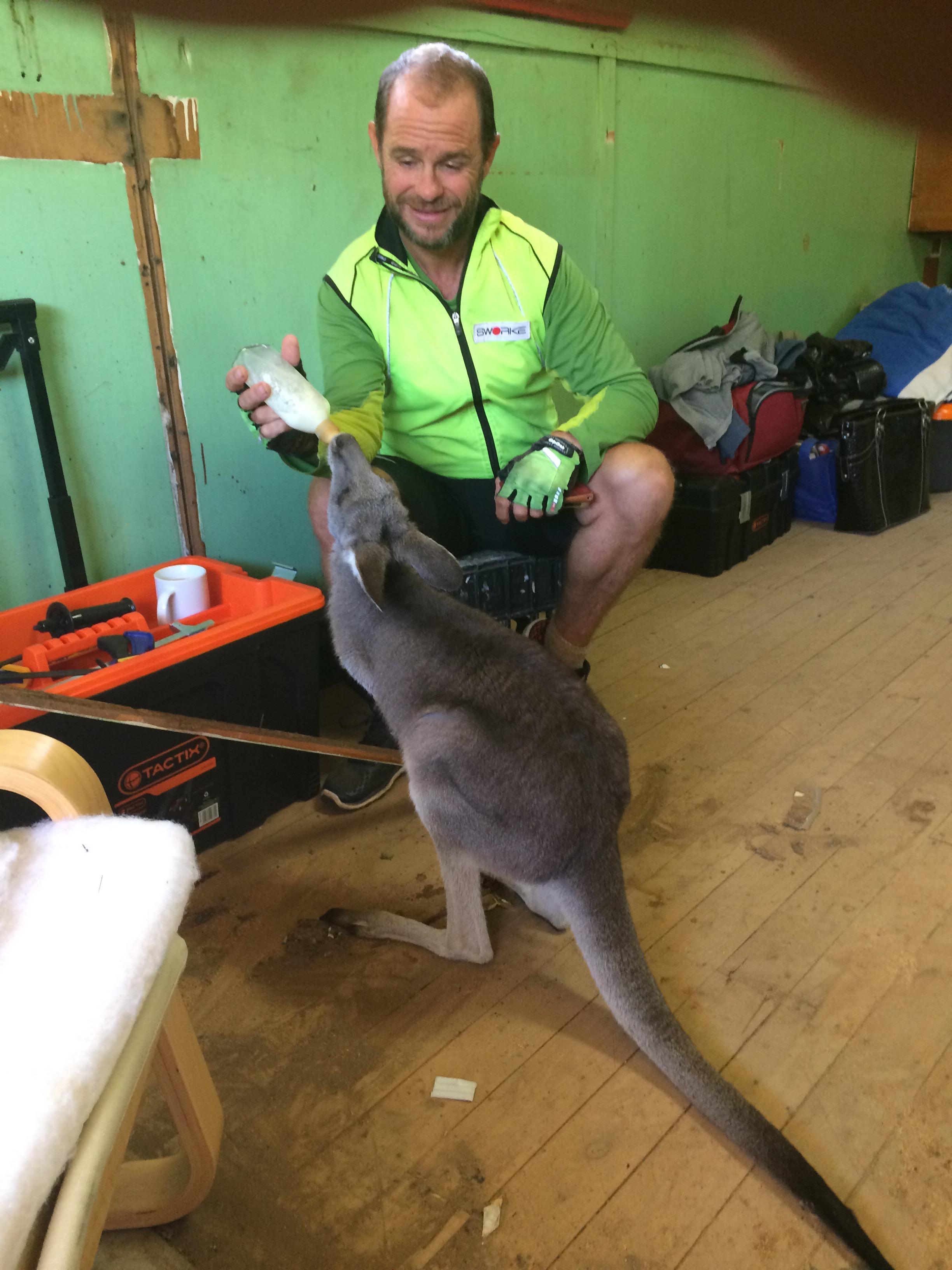 Yesterday I met a couple who had an orphan Kangaroo called Emma and I fed it some milk for lunch. It was a welcome change after seeing so many hundreds of dead ones.