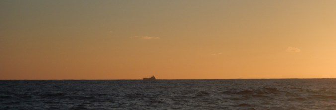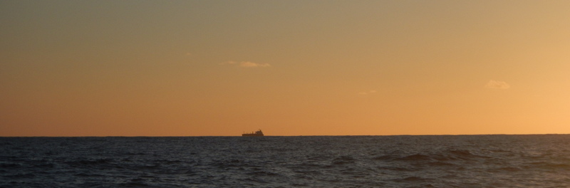 So the game of strategy continues. Together with the wonderful guidance from meteorologist Roger Badham whom I speak with twice per day, we are advancing as fast as possible when I can row, desperately hunting for favorable currents, dropping the sea anchor and waiting out patiently the adverse winds till they turn and I can make progress again. I really have no idea if I will make it to NZ, this is a massive adventure with no guarantee of success, but I will and am giving it 100% of my effort. The picture shows one of my friends, a cargo vessel disappearing into the dusk a few evenings ago.