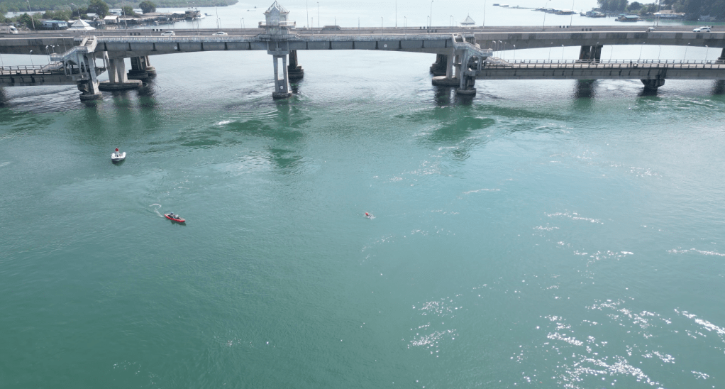 I swam out of the dark and into the sunrise on the morning of day 13 which was beautiful and I made over 18 km on my two shifts, rounding the top of Phuket Island, the most northern point which meant swimming under Sarasin Bridge was epic.