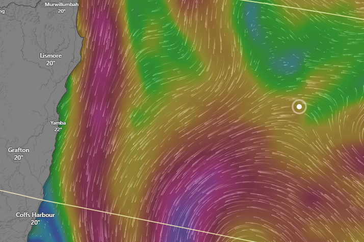 Grant and Luke are doing extra time together on the oars as they attempt to finish the expedition before the upcoming weather front causes them problems. The three options for landing Coffs Harbour, Yamba and Ballina are all open to the ocean. The latter two have offshore sand bars and all have breaking surf in rough weather. Ballina is closest but the southward flowing currents means they are more likely to trend towards one of the southernmost harbours of the three.