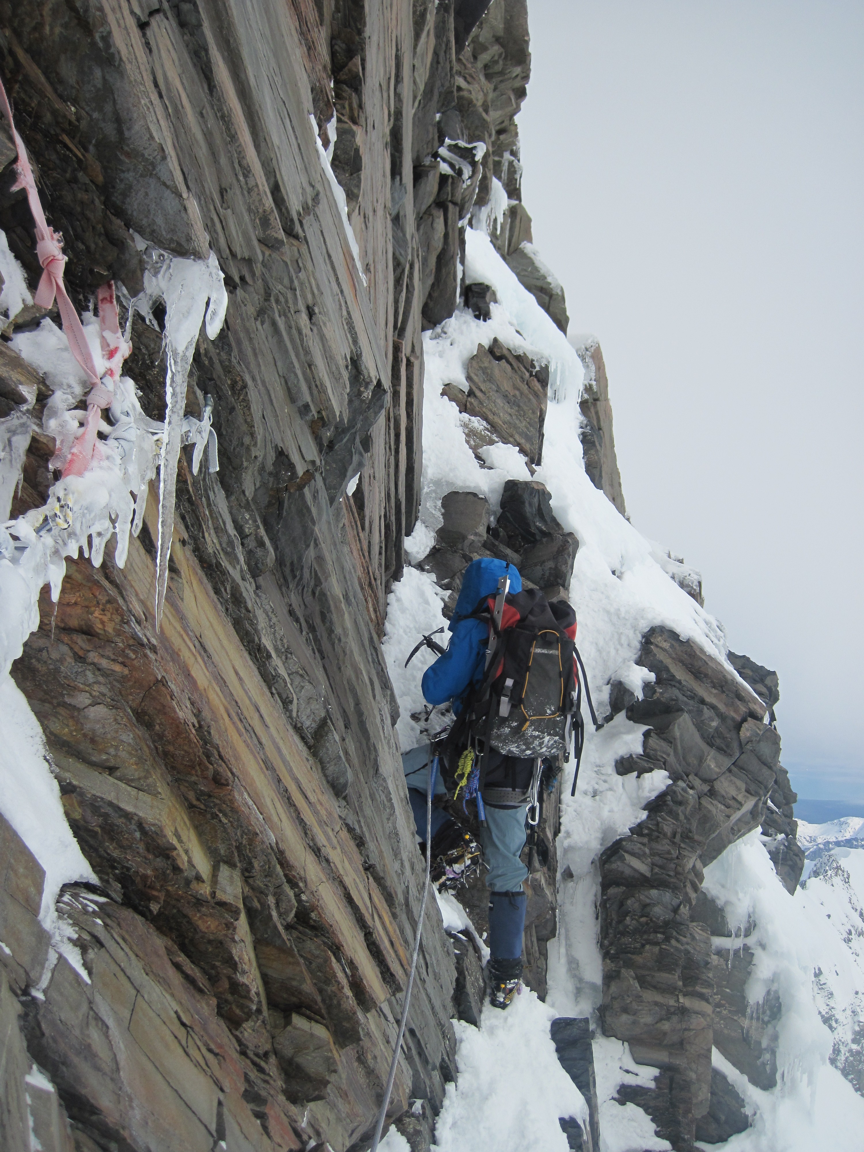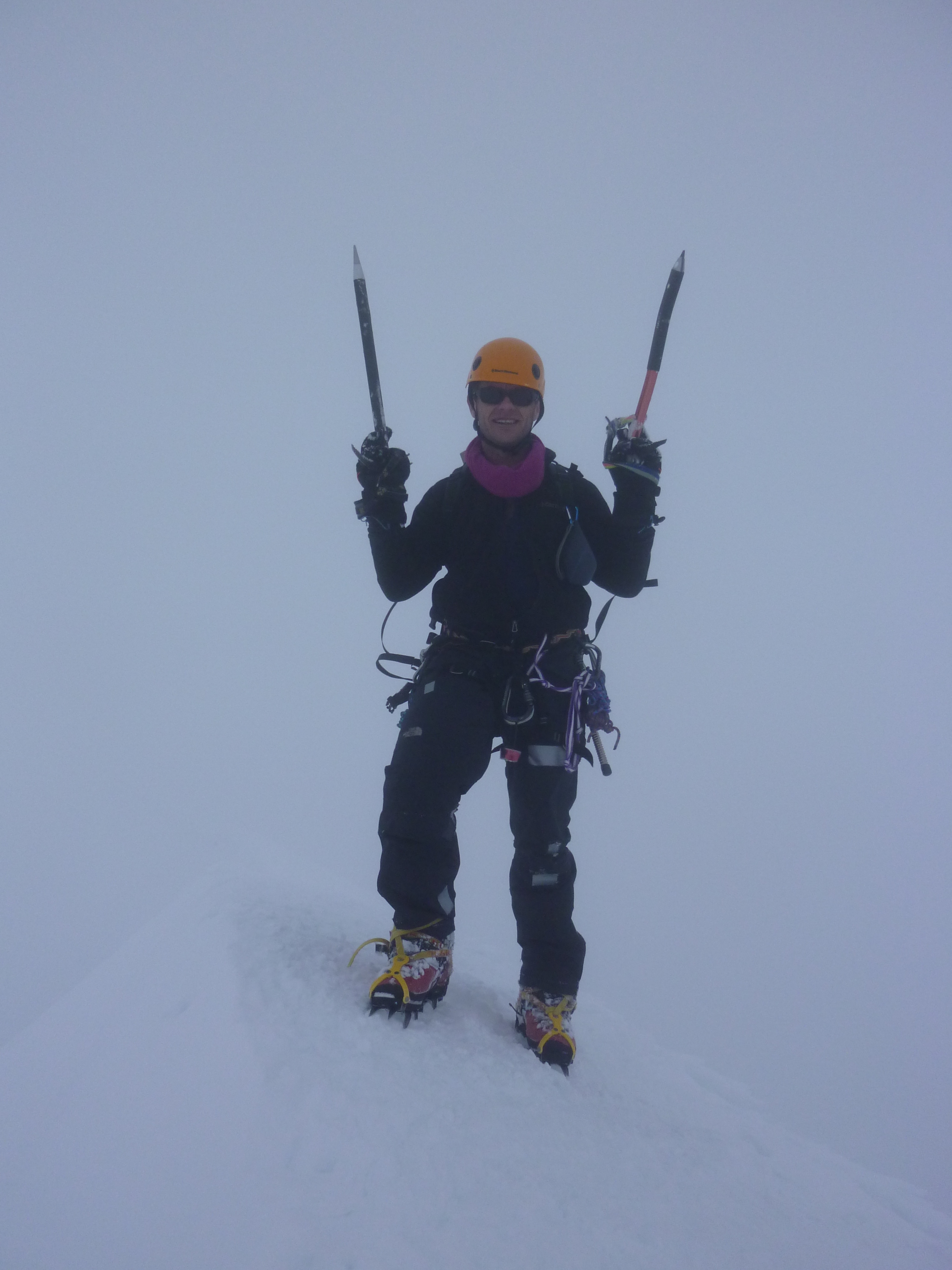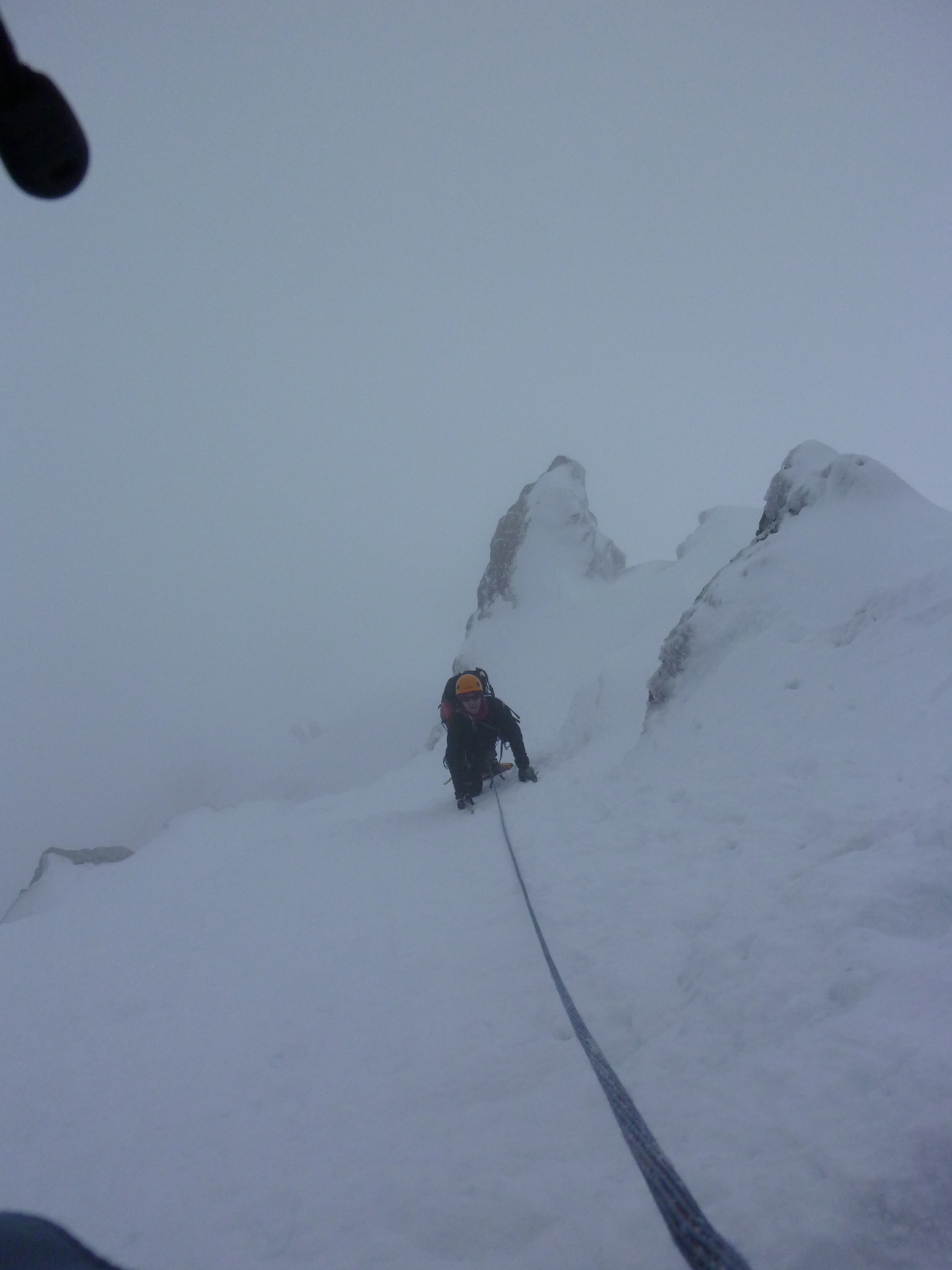 We set off back down after 15 minutes. It was slow going down. When we reached our ropes, I belayed Dave down a couple of pitches of the summit ridge then downclimbed to him. I had to pass a girl getting guided up who kept slipping on the iced up ridge which scared the hell out of me, and I kind of disliked her for a the few minutes I had to cross her path!!