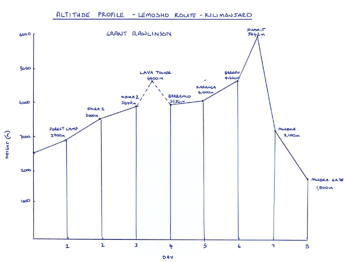 I felt very fit and strong for the first few days – however a brief burst of energy on day four as we trekked up to 4600m was a big mistake! I decided to race up to the summit of a small rock outcrop called Lava Tower. I spent the rest of the day with a huge headache and had a very big vomit that night. I never felt strong again for the rest of the trip and it was a struggle to get to the summit. Moral of the story is don’t push yourself too hard when you are acclimatising.