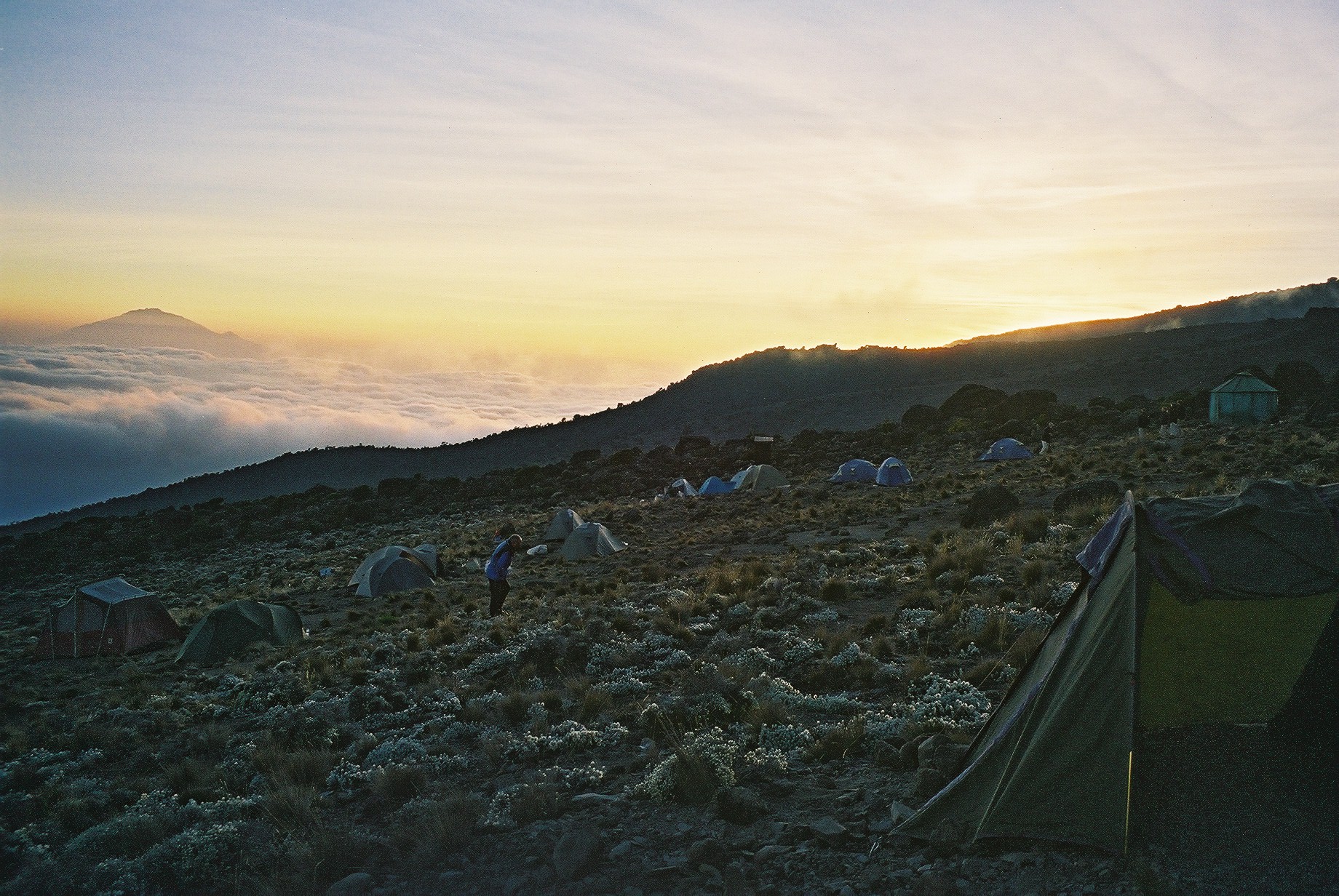 I climbed Kili with 3 other friends, Thomas and Archy Fairhurst and Barclay Morison in July 2004. We chose the Lemosho route as this is slightly longer than other routes on the mountain and I hoped it would allow us more acclimatization time as we ascended more slowly. Alot of people get sick on Kilimanjaro as the altitude gain is so rapid and the Coca-Cola route especially see’s some people rush up in 5 days. 5 days to reach 5895m is not my idea of fun.