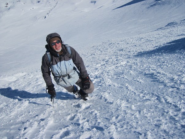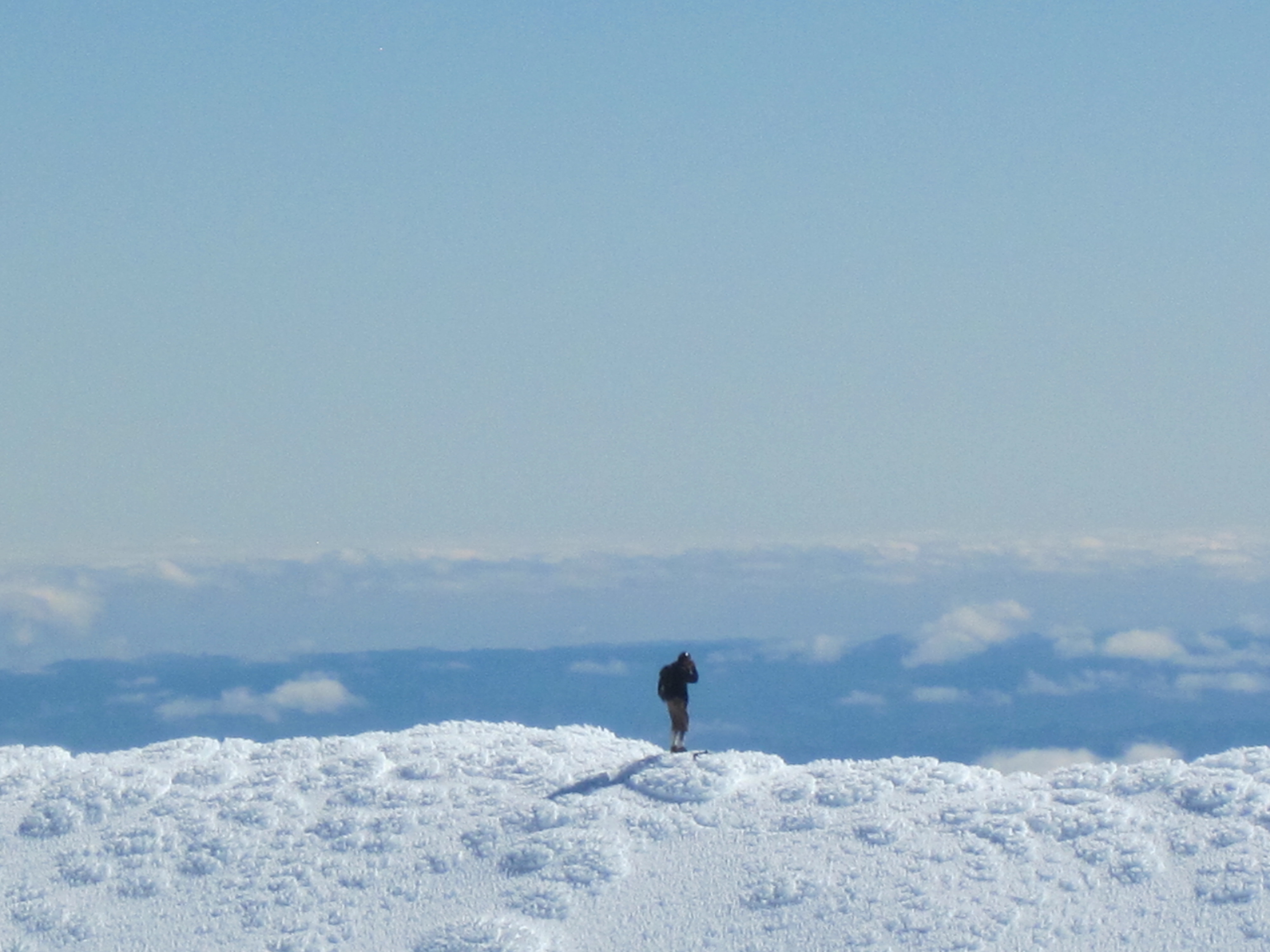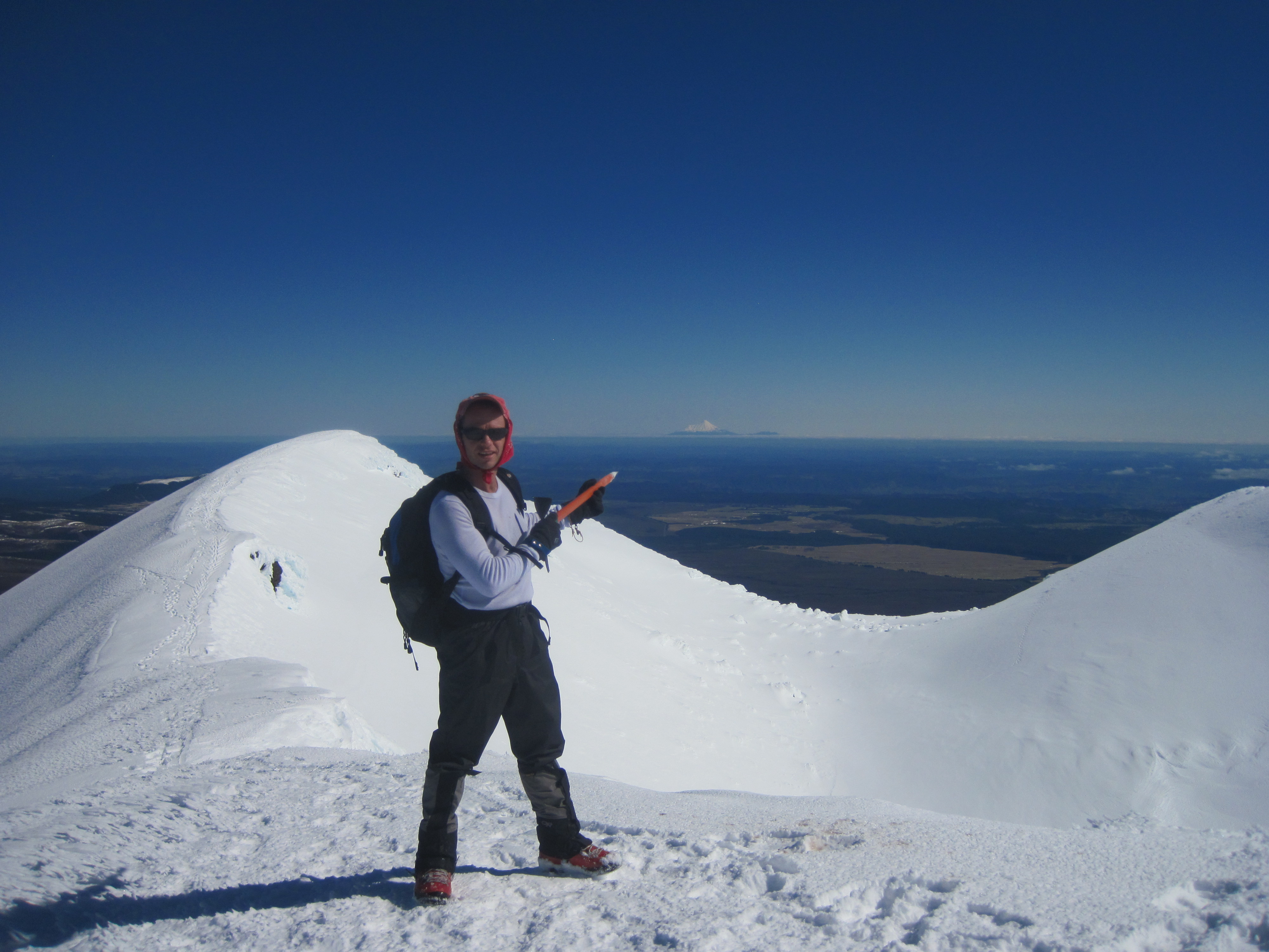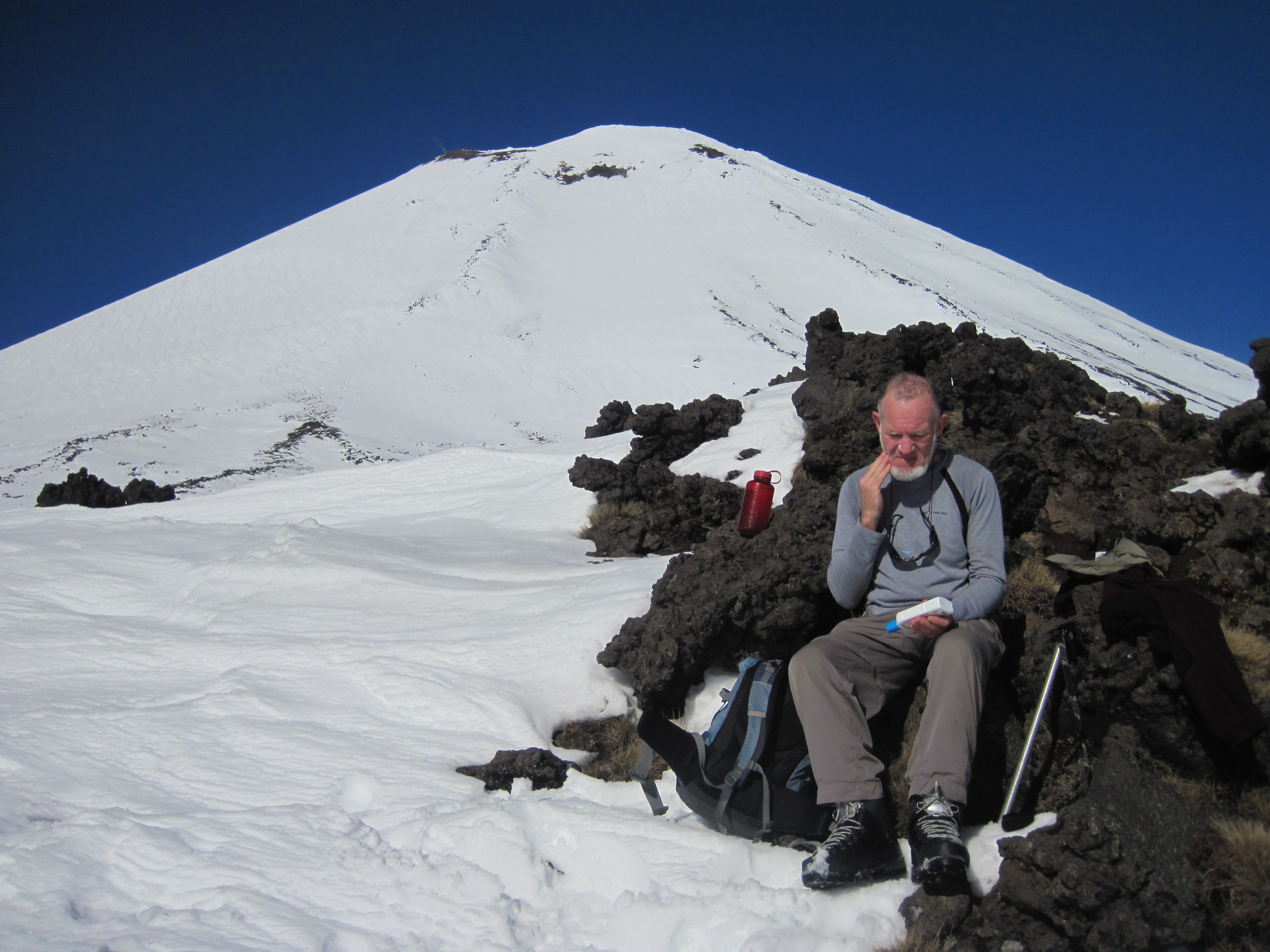 On the crater rim Mt Ruapehu, the summit of Ruapehu is still two hours away over my right shoulderJim Morrow coming up the final summit slopes in windy conditions – Turoa ski-field just visible, directly below him bottom rightMt Taranaki (my home), looking beautiful in the early morning from the summit slopes of RuapehuStanding on the summit of Ruapehu on a windy but beautifully clear day.View of Tongariro and Ngauruhoe (nearest) from the summit of RuapehuJim Morrow applying sunscreen on a hot day at the col on the Tongariro crossing. Mt Ngauruhoe's summit directly behind him.Jim Morrow sweating his way up the slopes of NgauruhoeA lone climber on the opposite wall of Ngauruhoe's crater rimClose up of the climber
