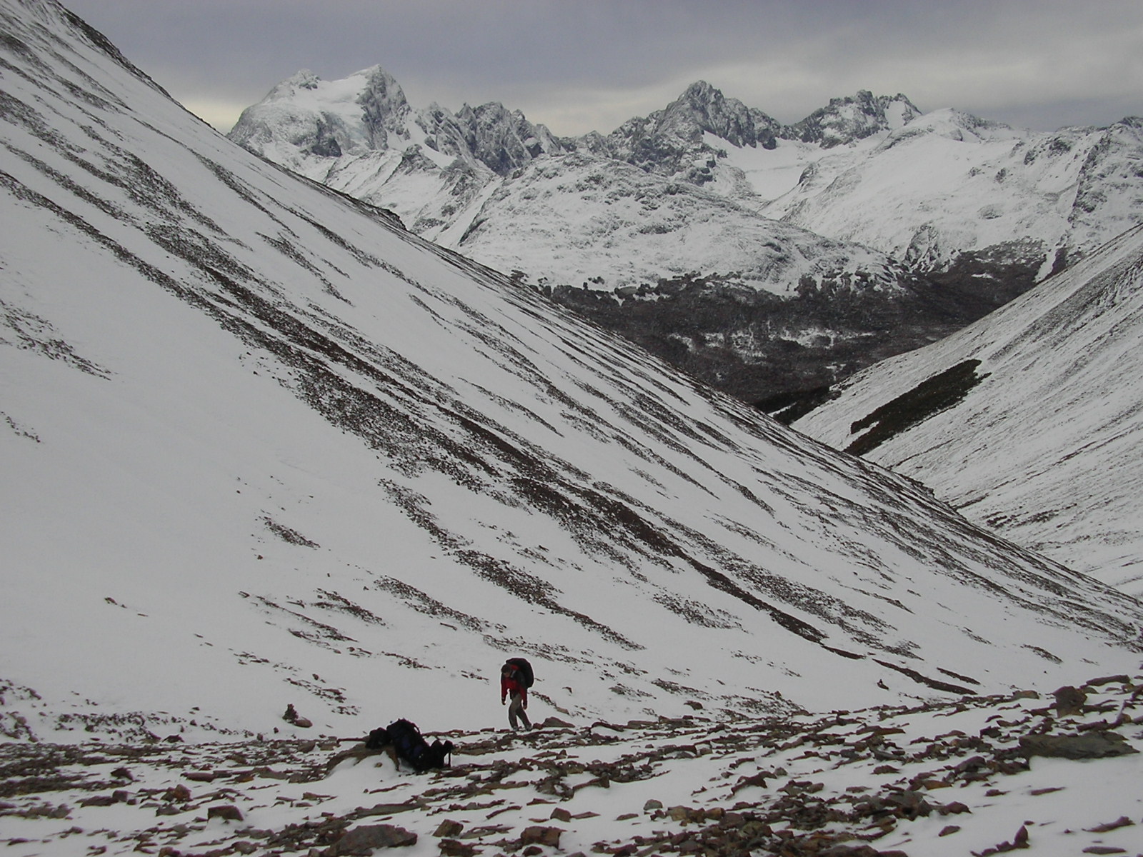 The trek is located close to the town of Ushuaia, we took a taxi for a short drive to the start for 10 peso, then walked up a valley following a stream, through fields of peat and beautiful trees for 3 hours. We then turned off and headed up into the alpine environment, over the pass and camped on the other side. The following day we walked out past beaver dams and amazing views of the Beagle channel, back down into Ushuaia. I highly recommend this trek but be careful with route finding and the conditions on the pass can be challenging so take the normal precautions when travelling in the mountains.