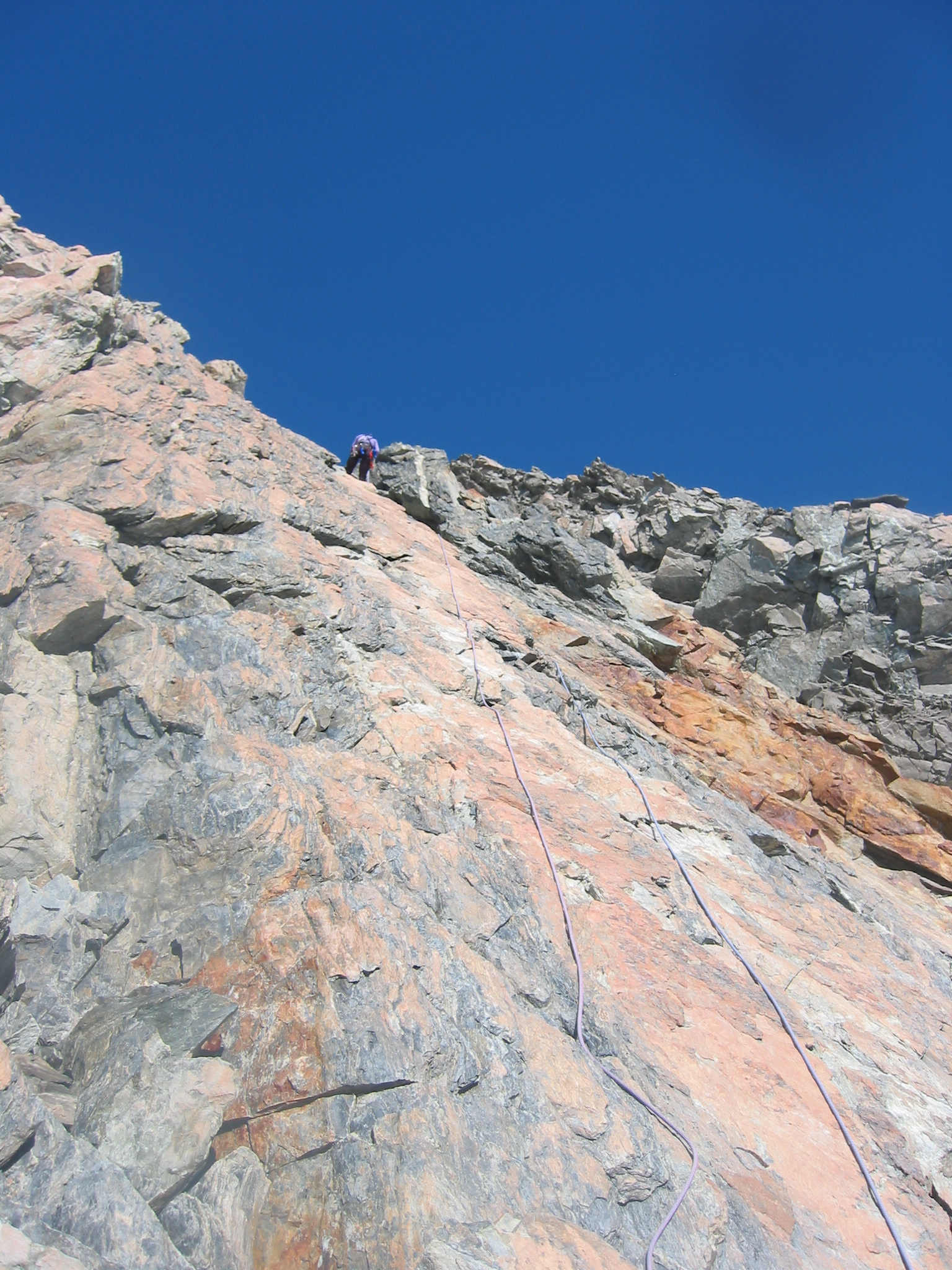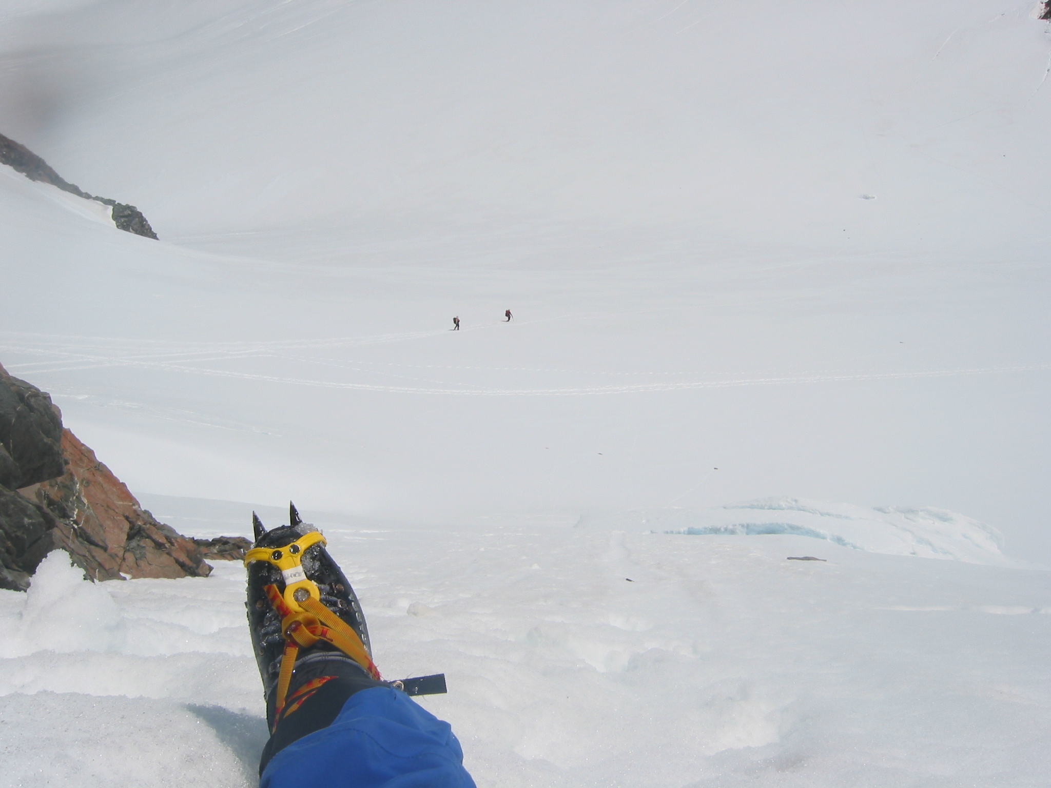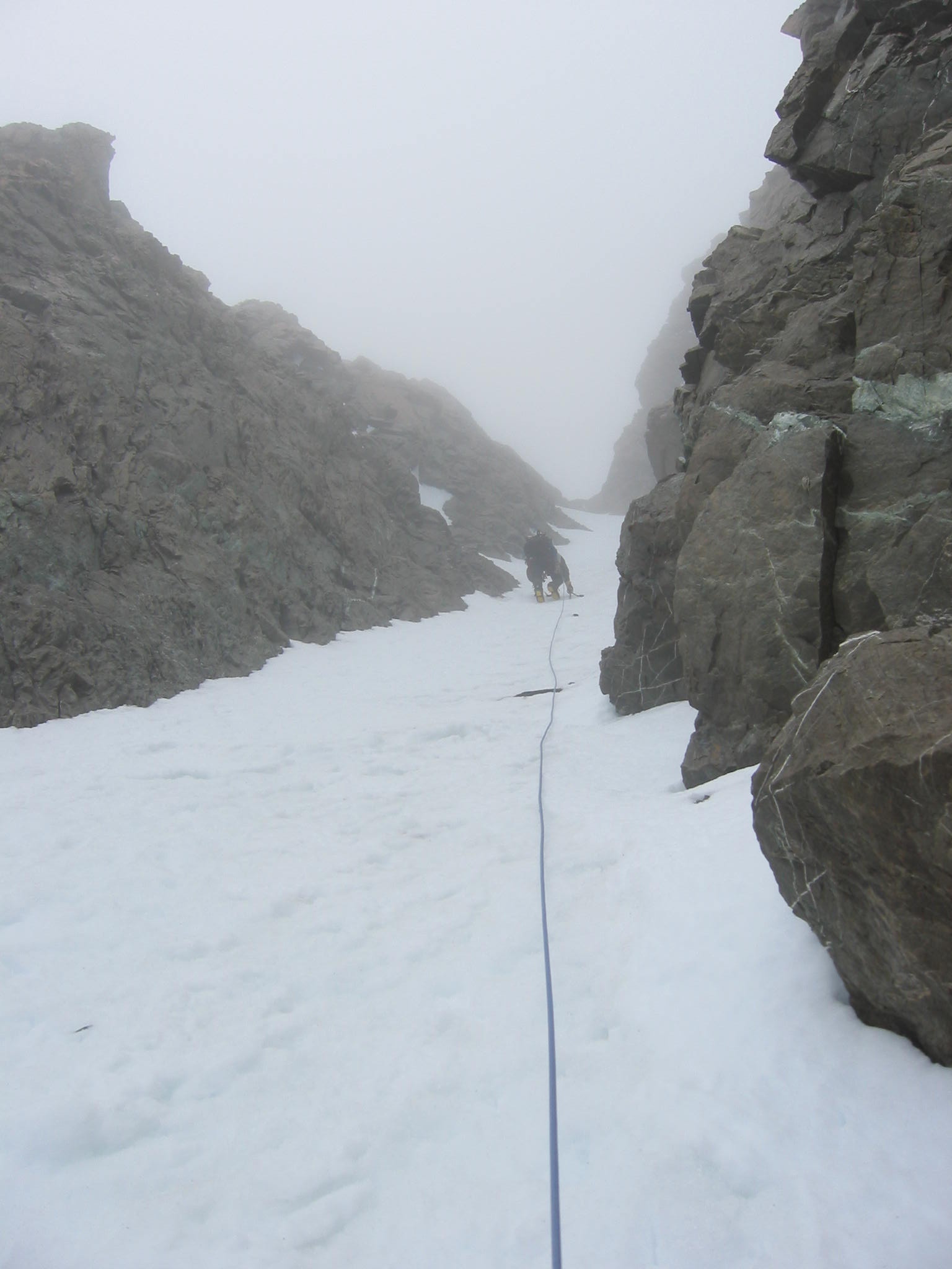 Because of 9144 ‘s proximity to Kelman hut and the fact it has a number of short routes on it, all graded around the ‘2’ level its a nice little half-day adventure from Kelman Hut. I climbed it twice in January 2005 with Vanessa Wills. Once via the couloir on the west face and once via the rock buttress on a route called ‘Red Buttress’. There is fantastic views from the summit on a nice day, down the Tasman valley and also across over the other side into the Murchison valley. A nice peak for getting practice in on steep snow or rock while preparing for something bigger.